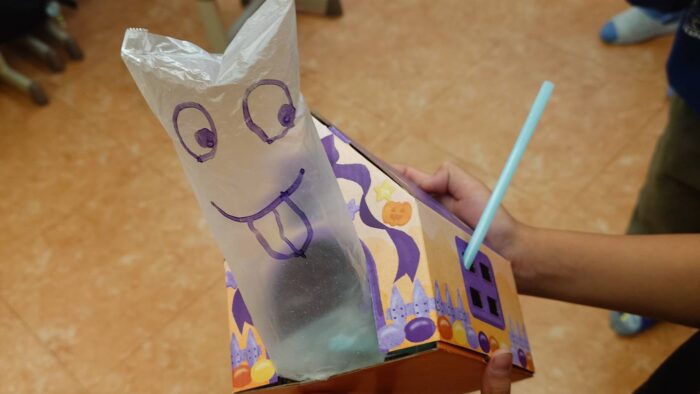 ゴーストハウスから、自分の作ったお化けが飛び出てきて、生徒さん達は大喜びでした![]()