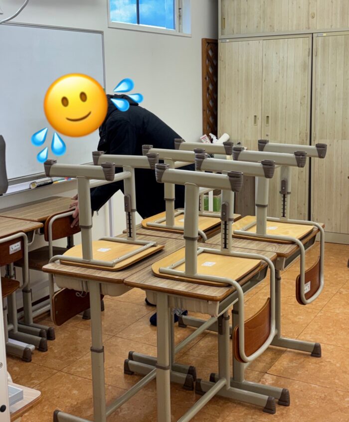 そして生徒の皆さんが毎日使うデスクも普段以上に、しっかりと除菌・清掃いたしました![]()